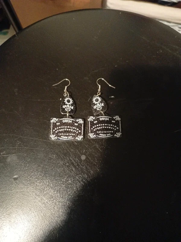 Cette semaine, nous vous présentons une très belle paire de boucles d'oreilles ouija, elle sont en bois peint vous les retrouverez dans notre boutique au prix de 8 euros alors n'hésitez pas....